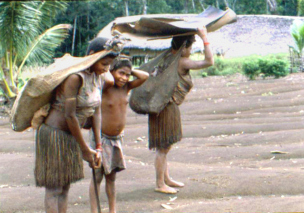 A married couple has traditionally formed the basic Gebusi gardening unit, though many subsistence, foraging, and household tasks are carried out collectively by groups of men or by groups of women. The effective domestic unit usually consists of two or three closely related nuclear families linked through agnatic, affinal, or matrilateral ties. Patterns of co-residence reflect these relations: in the 1980s and 90s adult male wife’s brothers/sisters’ husbands co-resided at 68 percent of the rate possible; mother’s brothers/sisters’ sons at 82 percent; father’s brothers’ sons at 85 percent; wife’s father/daughter’s husbands at 88 percent; and brothers at 92 percent. The settlement as a whole is made up of several interconnected extended-family clusters and functions as a unified domestic group for sponsoring feasts. [Source: Bruce Knauft “Encyclopedia of World Cultures, Volume 2: Oceania,” edited by Terence E. Hays, 1996]
