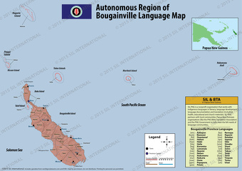 Bougainville’s linguistic diversity is exceptional, with languages belonging to three major families: 1) Austronesian languages – spoken primarily in northern Bougainville, Buka Island, and various coastal areas; 2) North Bougainville languages (non-Austronesian) and 3) South Bougainville languages (non-Austronesian)